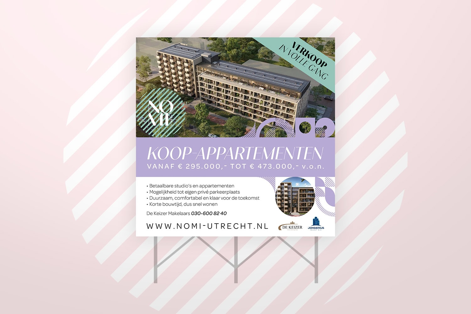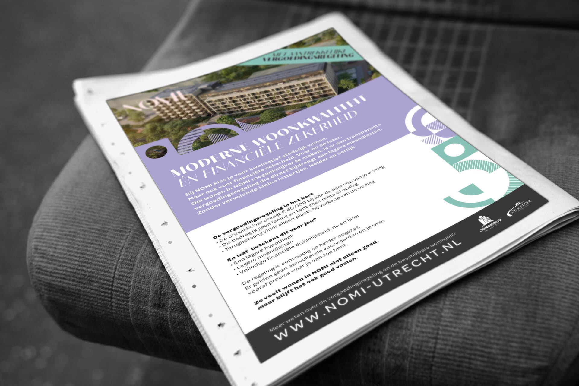 Voor NOMI verzorgden wij het complete communicatie- en brandingtraject. Van naamgeving en logo- en conceptontwikkeling tot on- en offline advertentiemateriaal, webdesign en evenementenmiddelen. Het resultaat is een heldere, herkenbare positionering die het project krachtig en consistent in de markt zet.