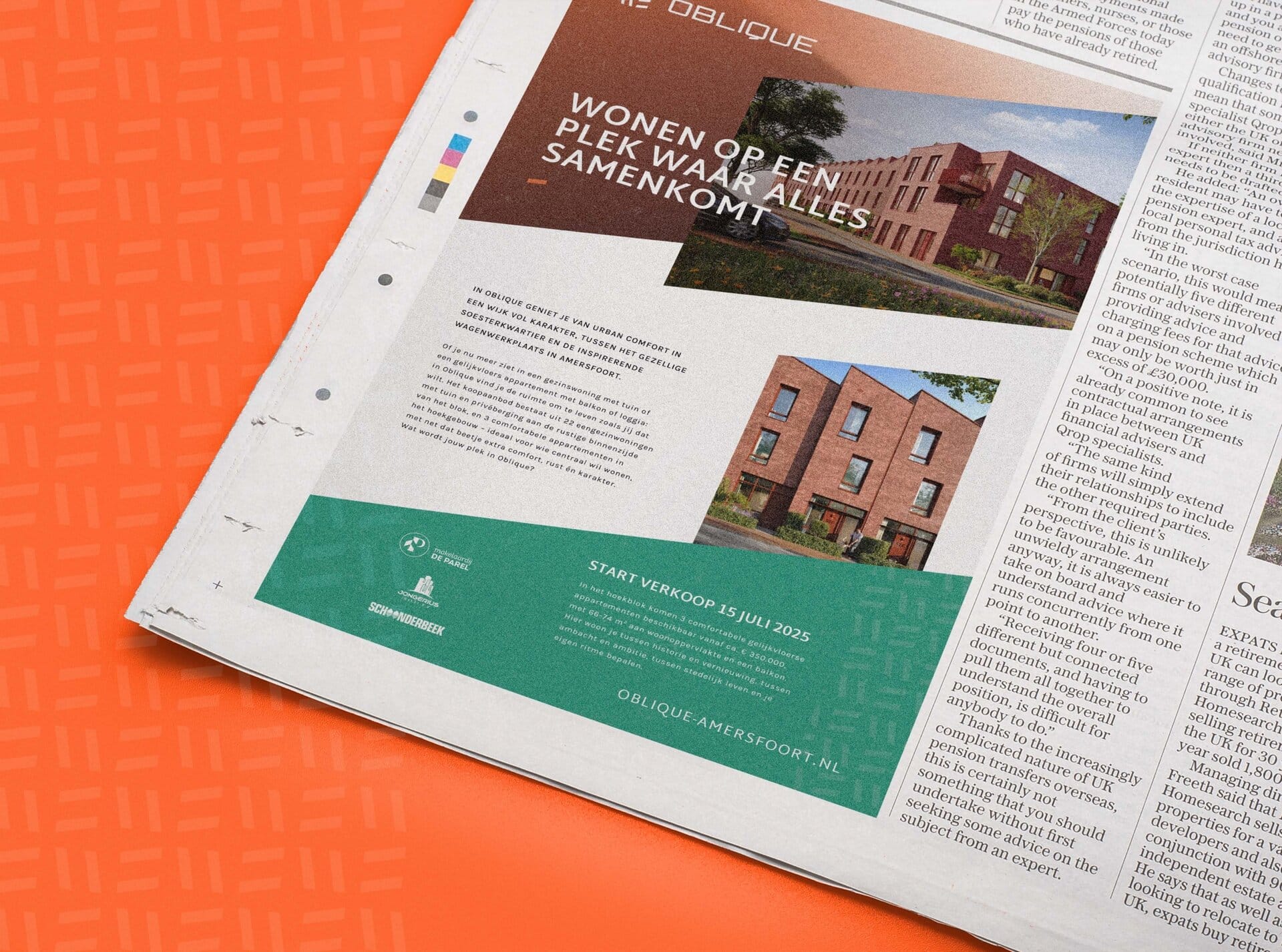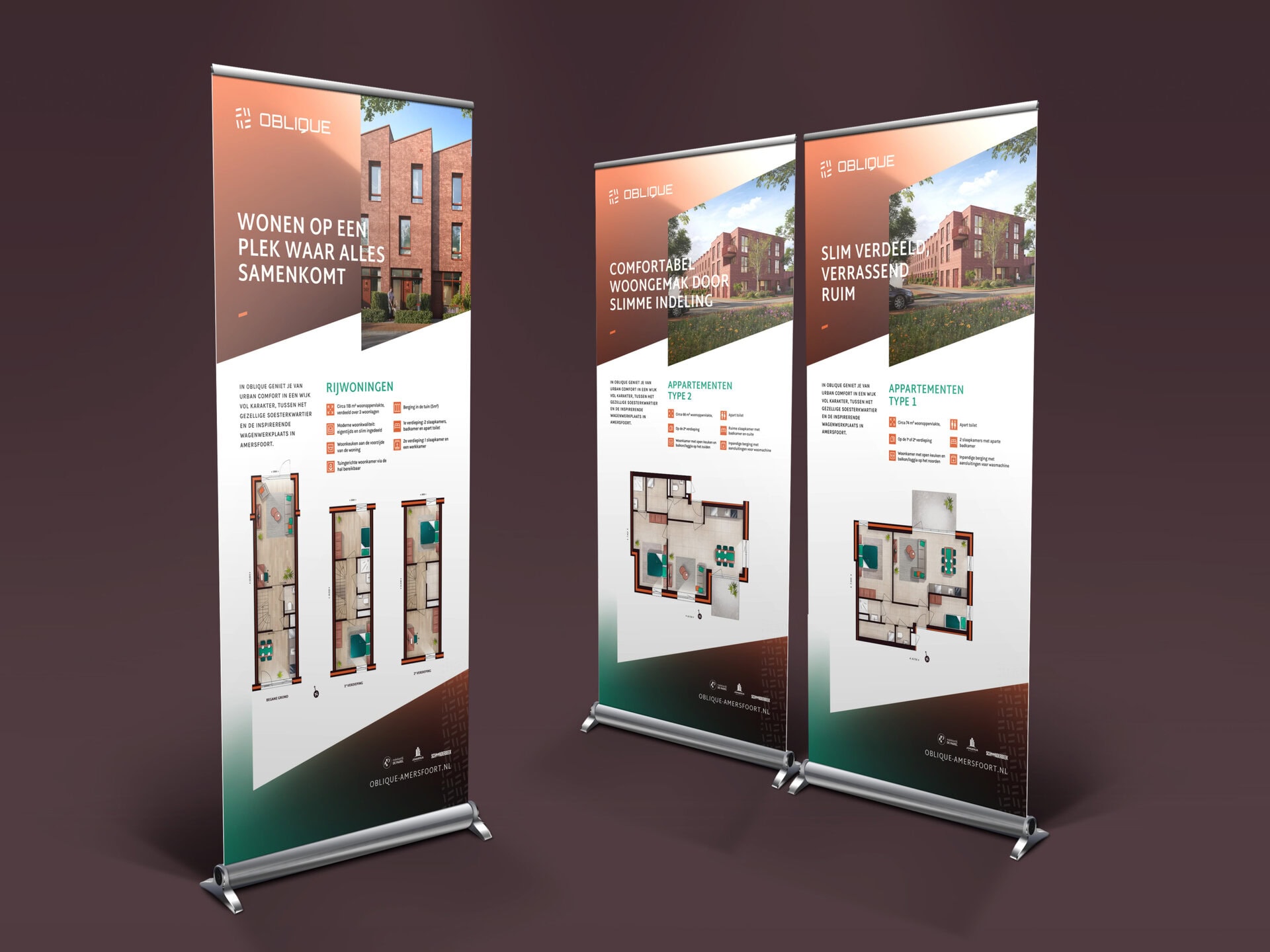 Oblique wordt gerealiseerd door Jongerius Invest in samenwerking met partners waaronder Bouw- en Aannemingsbedrijf Schoonderbeek B.V. en OoK architecten, en legt de nadruk op moderne, duurzame woningen met slimme indelingen. Voor Oblique verzorgden wij het volledige communicatie- en brandingtraject. Dit omvat: naamgeving, logo- en conceptontwikkeling, on- en offline advertentiemateriaal, webdesign en evenementenmiddelen. Het resultaat is een sterke, herkenbare projectidentiteit die de eigenzinnige kwaliteiten van Oblique krachtig vertelt.